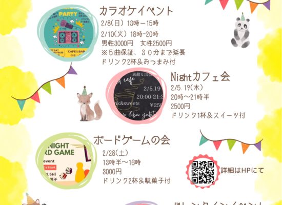 - 緑色の欄はイベント日です。色々な企画をしていますので、どうぞ参加ください☆
