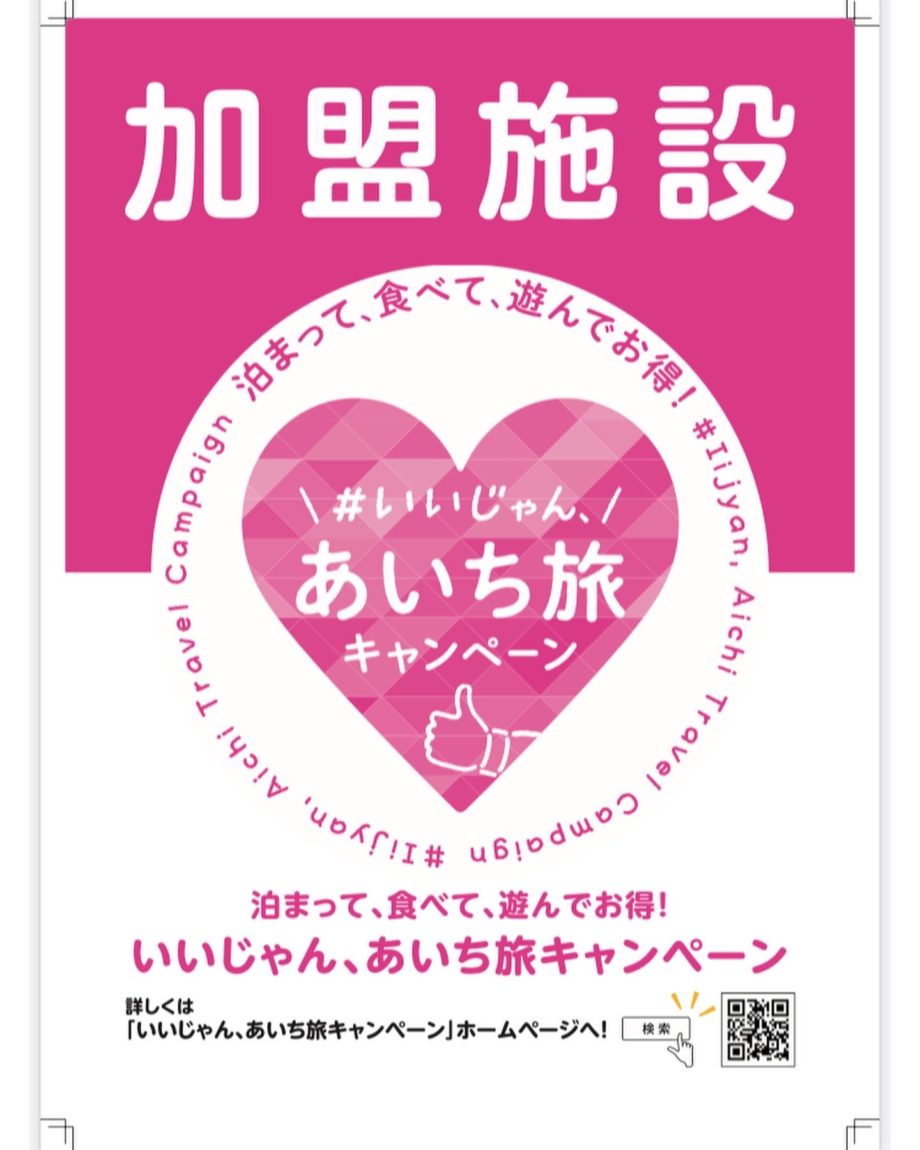 いいじゃん、あいち旅キャンペーン加盟店になりました!