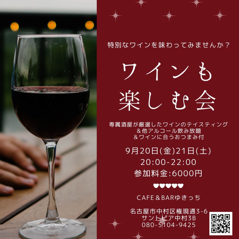 【9/20,21】ワインも楽しむ会開催!